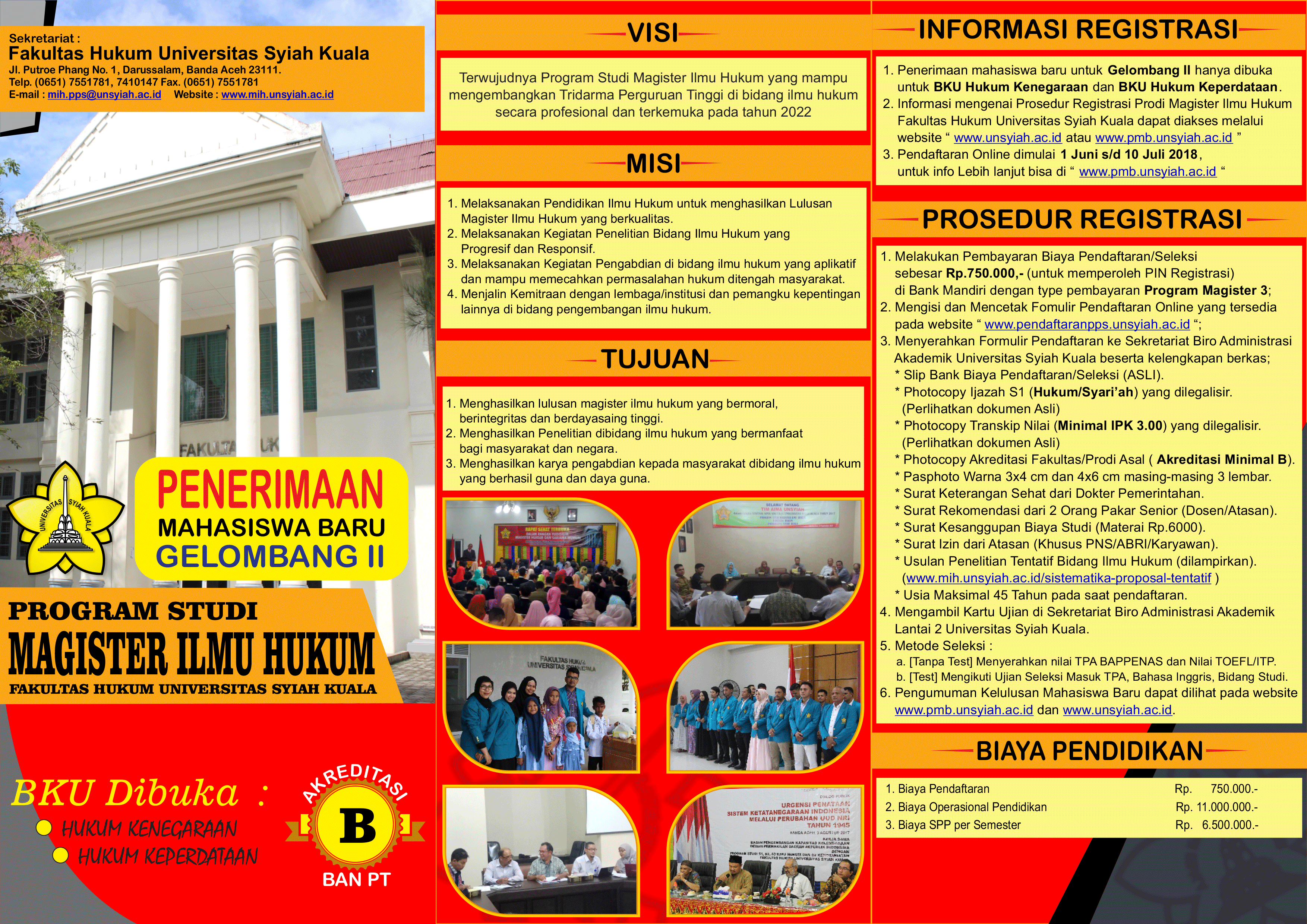 Penerimaan Mahasiswa Baru Gelombang II Program Studi Magister Ilmu Hukum Fakultas Hukum Universitas Syiah Kuala